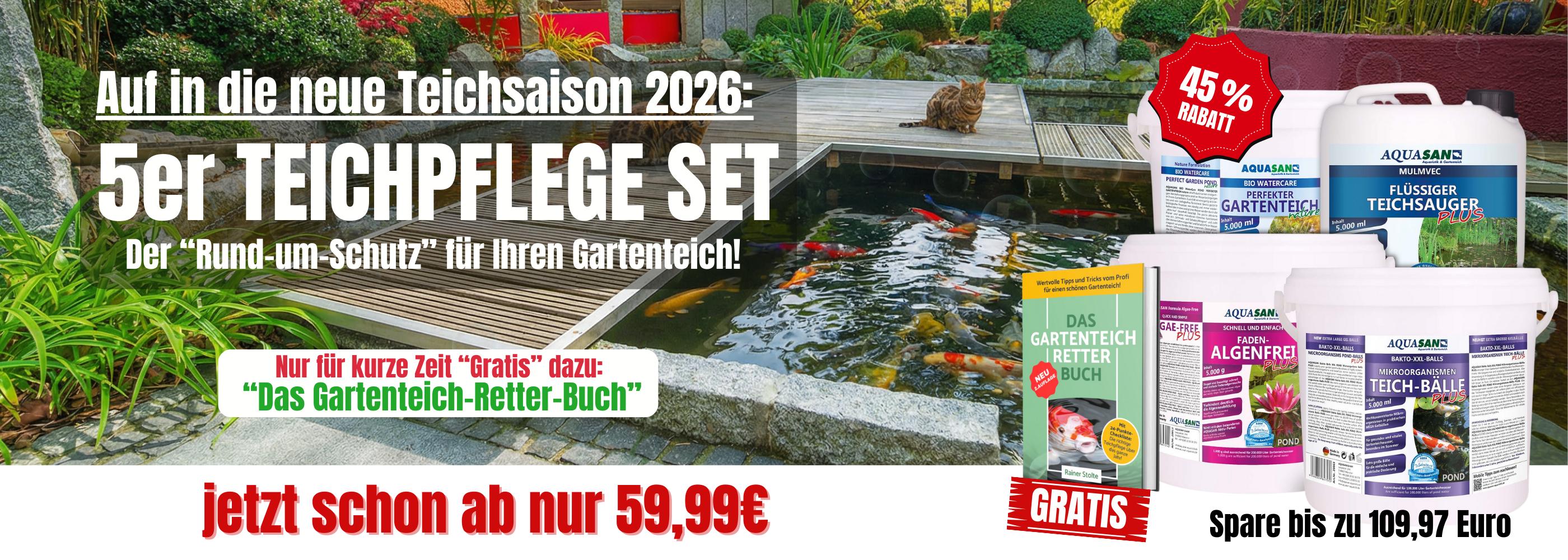 Habe mir bei Aquasan das Teichpflege-Set geholt, weil einzelne Produkte einkaufen für mich etwas nervig ist. Hat gut funktioniert! Teich und Fische sind happy.
